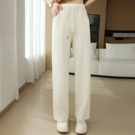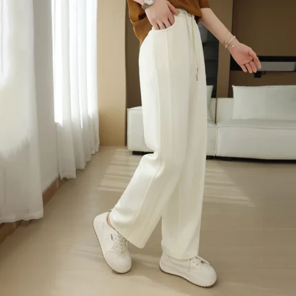 سراويل نسائية مستقيمة بأربطة مطوي