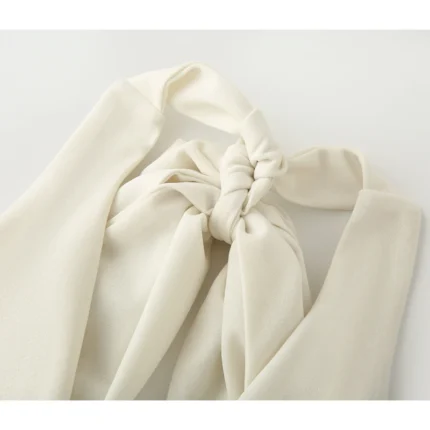 اكتشفي فستان "سحر الليلة" الأبيض من True Step. تصميم صيفي أنيق بدون ظهر وربطة هالتر، يمنحك جاذبية فريدة وقوامًا ممشوقًا. قطعة مثالية لسهراتك الصيفية. تسوقي الآن!