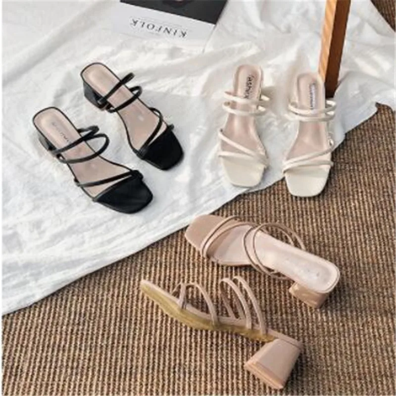 أحذية نسائية موضة صيف 2023 عالية الجودة نعال نسائية لون سادة غير رسمي بكعب منخفض مجموعة من أصابع القدم مفتوحة الأصابع Zapatillas De Mujer